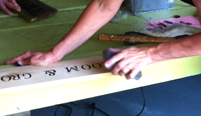 Everyone made their own basket and then stenciled a small wooden sign that was wired on the front. So today's post is just some pictures of the process. It was a beautiful summer day and so fun to spend time with great friends. You can find the basket instructions here.
